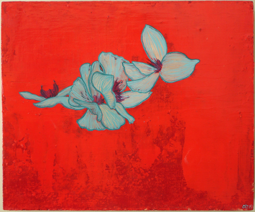Floating Cherry Blossums, 12"X10", Oil on Wood Panel