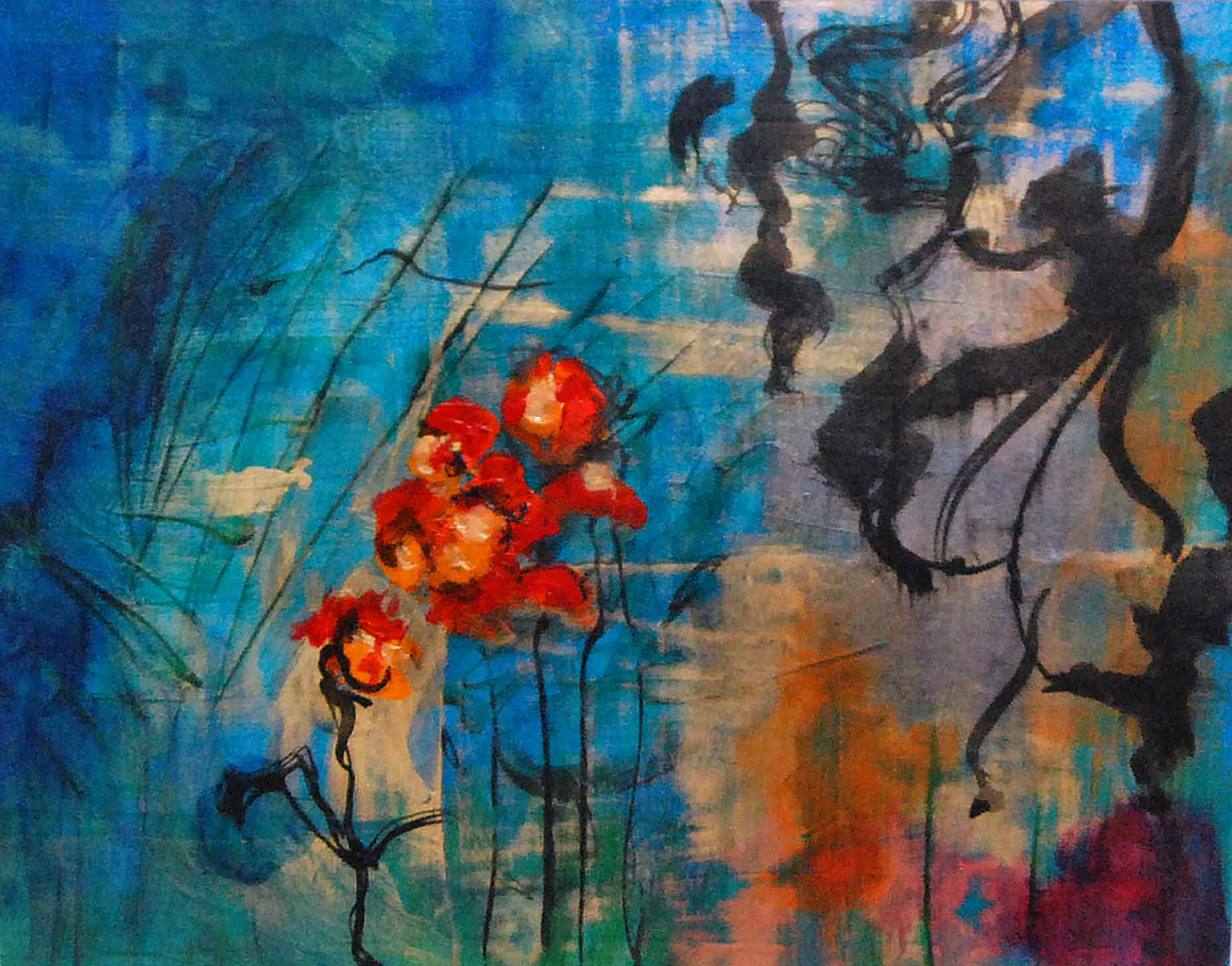 Water Dream, 12"X10", Acrylic, Paper on Wood,