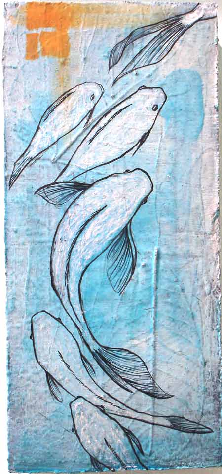 Swimming Up, 4"X10", Acrylic. Paper on Wood
