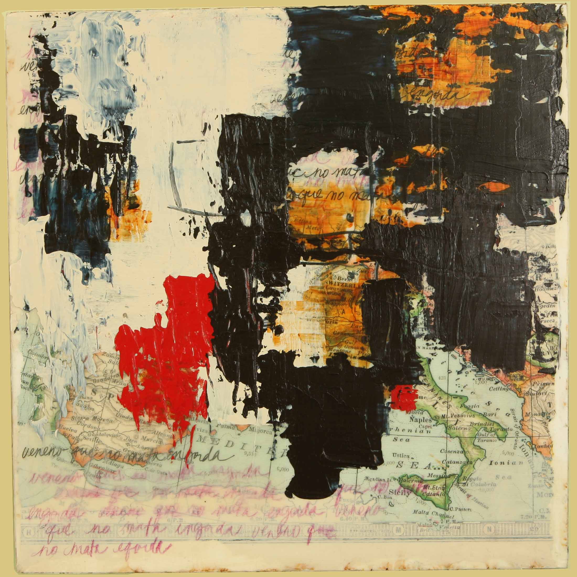 Acrylic. Paper on Wood, Walnut Veneer Sides